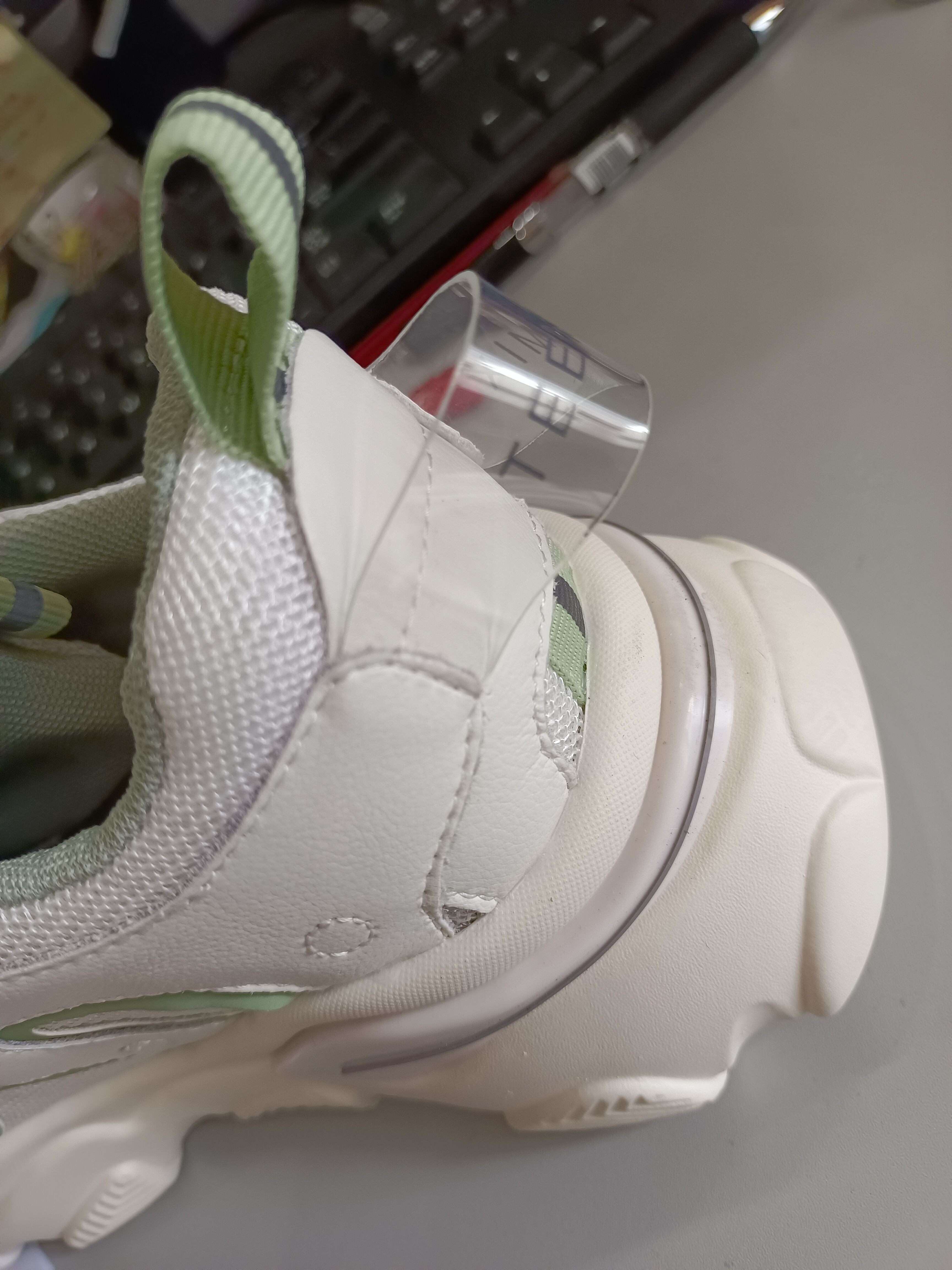 At the beginning, the clear bands on shoes are made of PVC material. But after TPU material appearing, PVC band is replaced by TPU one step by step. It refers to the different feature and performance of these two material.