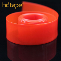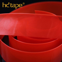 This type of TPU ribbon tape is colored in translucent red, which is customed for customers. In usual, we produce TPU tape in natural color: clear transparent. If customers have request on colors, we will follow the order. To produce colored TPU tape, we will firstly confirm the color schemes. Then make colored raw material particles. Finally, produce colored TPU band with the colored material.