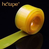 The translucent yellow ribbon band is made from TPU. We also proofed green, red and rosy color tape that is translucent or solid. However, TPU band tape is usually in natural color: clear transparent.